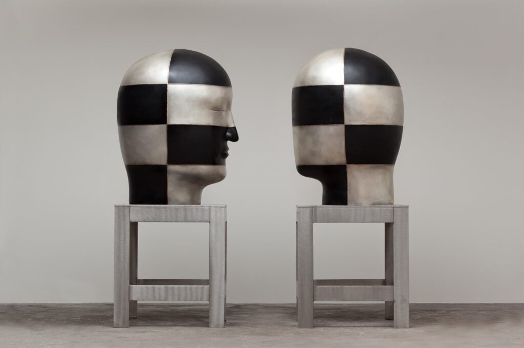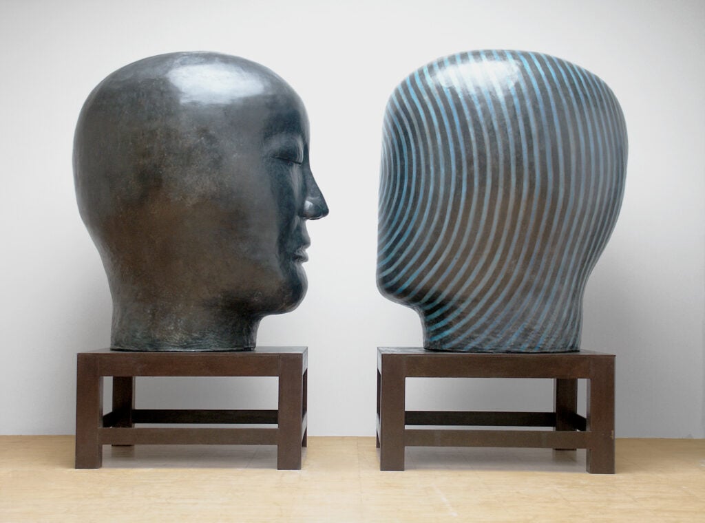“My interest is in the creative spark,” says Jun Kaneko. “That’s the idea, the energy, and each idea has the perfect match of material to work with. It can’t always be clay or paint. I’m open to finding the medium to fit the idea.” The spark that lead Jun Kaneko into bronze was a desire to efficiently create forms in multiples, which would be more conducive to interactions between objective and pictorial space. Thus, in 2002, at the encouragement of his friend and mentor Peter Voulkos, Kaneko employed the Artworks Foundry in Berkeley, California, to create the first pair of Heads to be cast in bronze.
