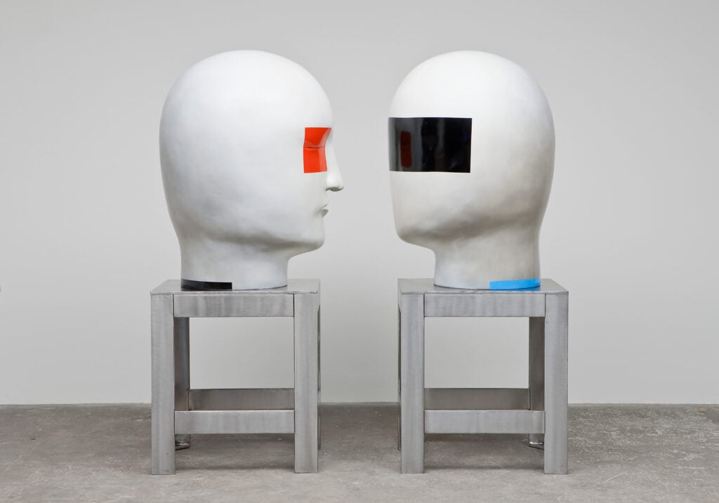 Cast bronze, enamel, stainless steel, 74 x 29 x 33.25 inches each. Private collection.