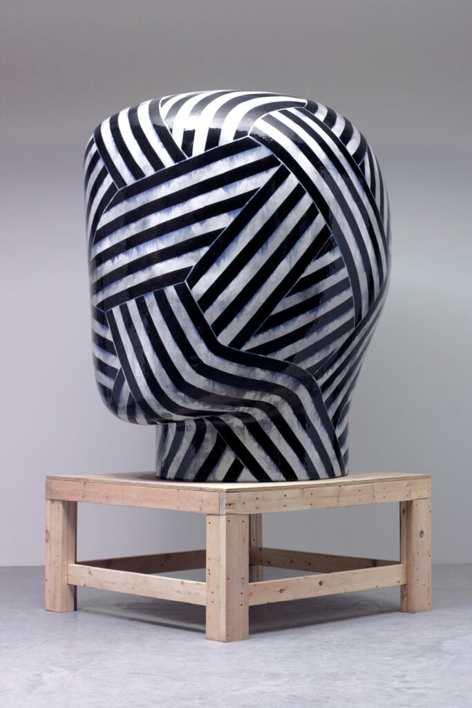 Hand built and glazed ceramics, stainless steel, 101.5 x 51 x 57 inches. Collection of Privé Island, Aventura, FL, USA.