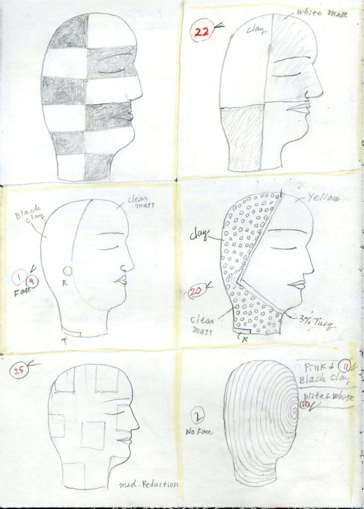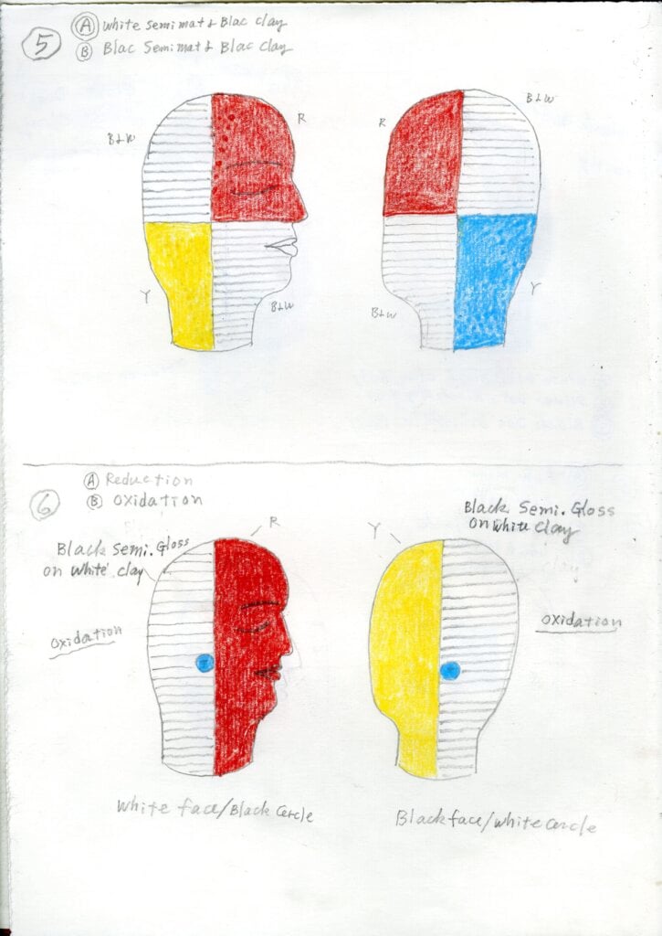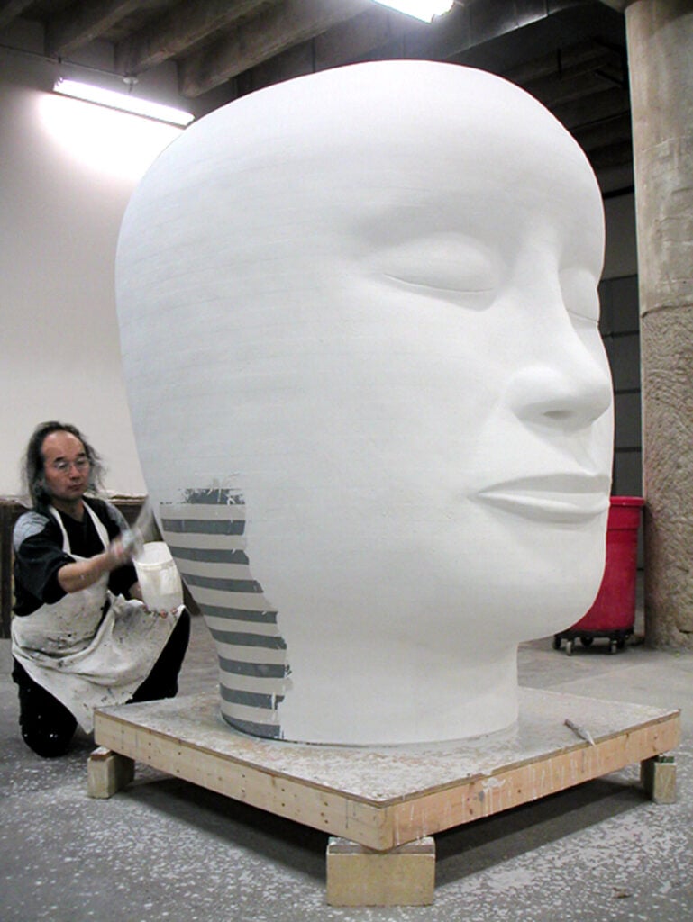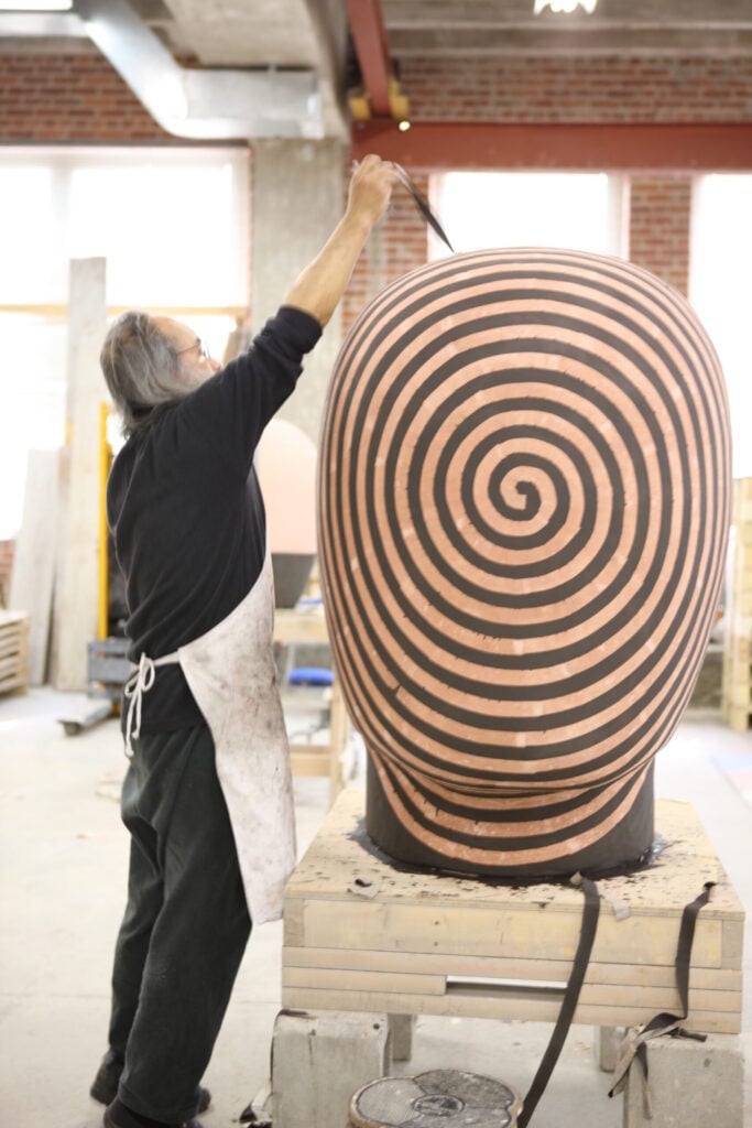 Jun Kaneko glazes a Head in his studio