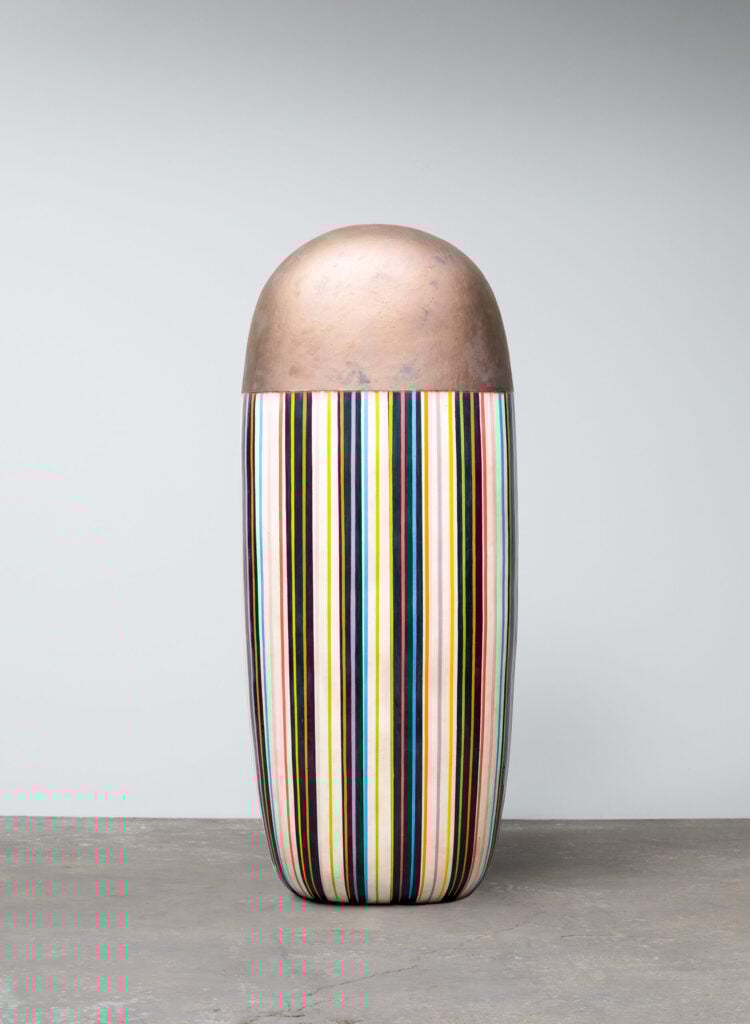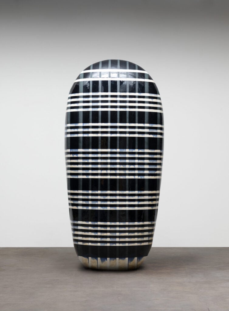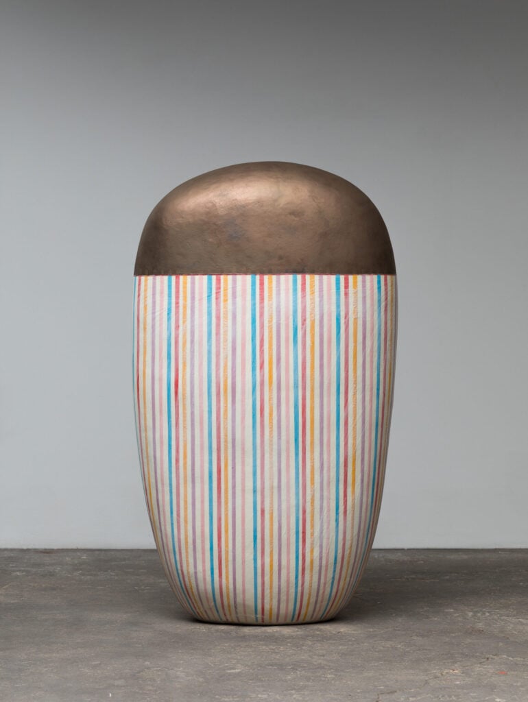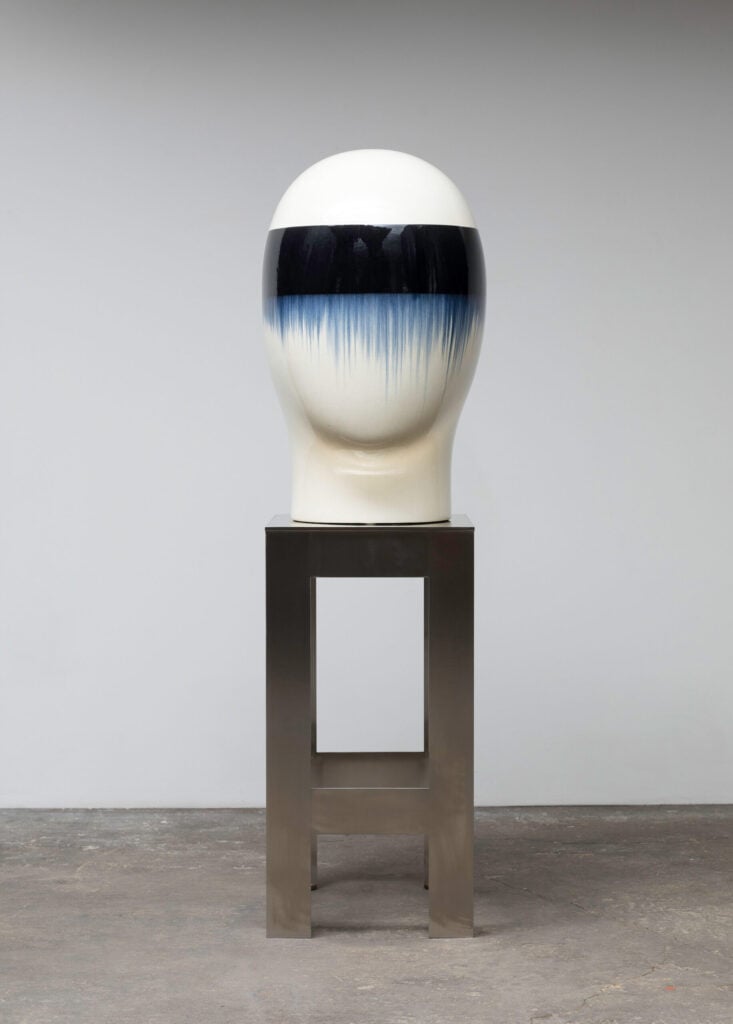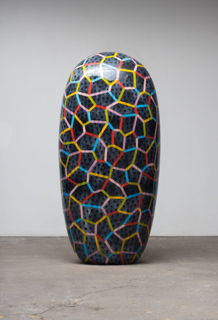 Hand built and glazed ceramics, stainless steel, 70 x 43.5 x 55 inches. Collection of the Ree & Jun Kaneko Foundation, Omaha, NE, USA.