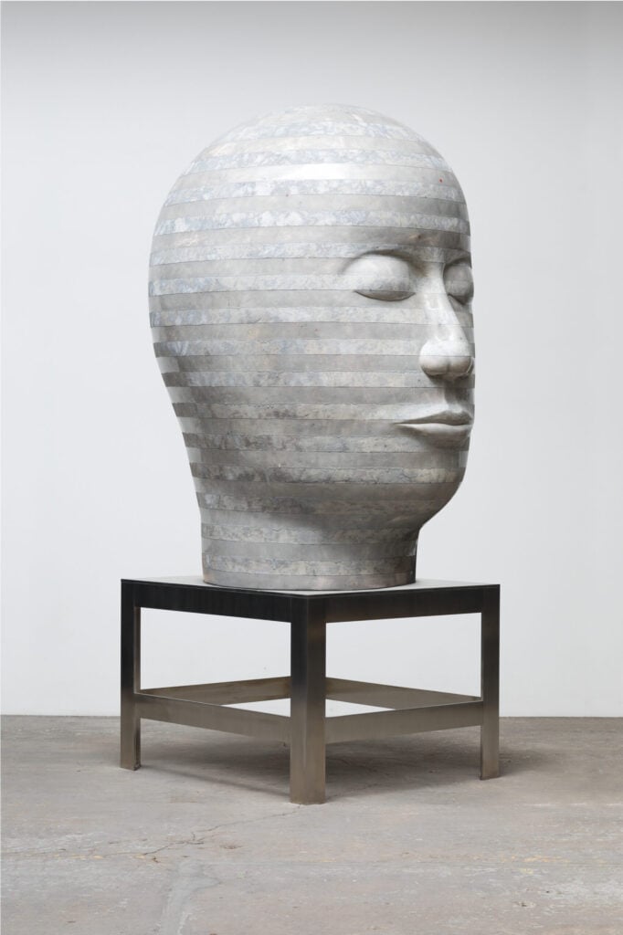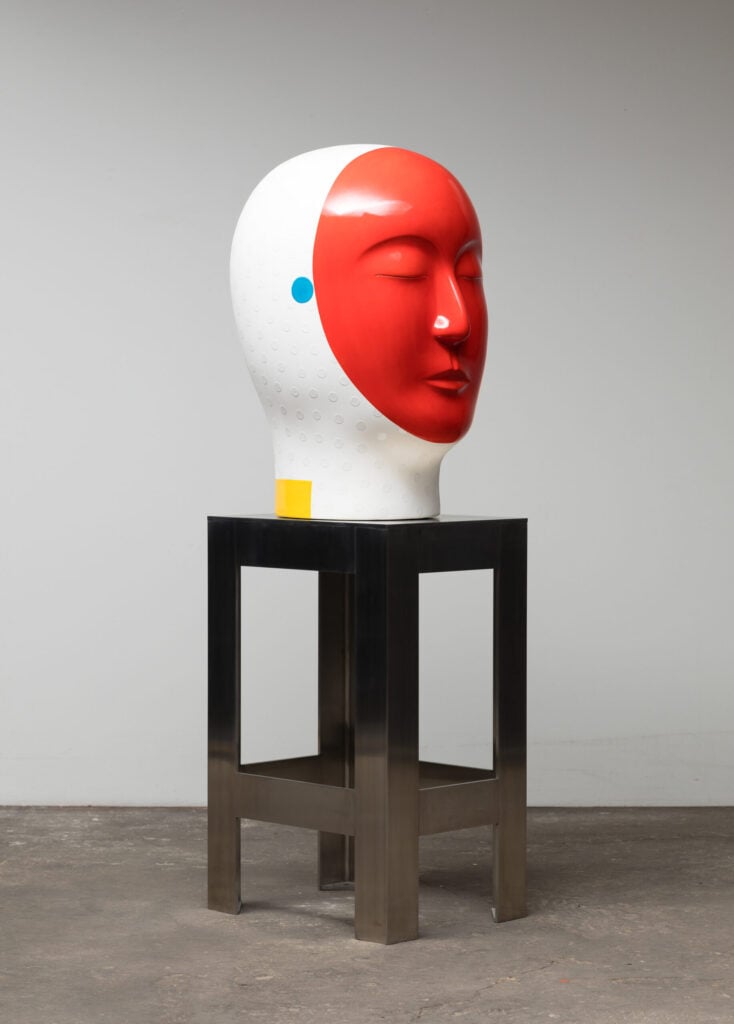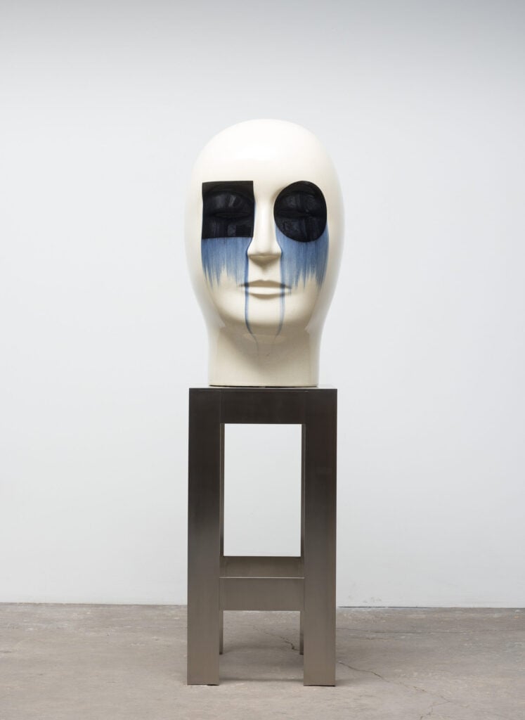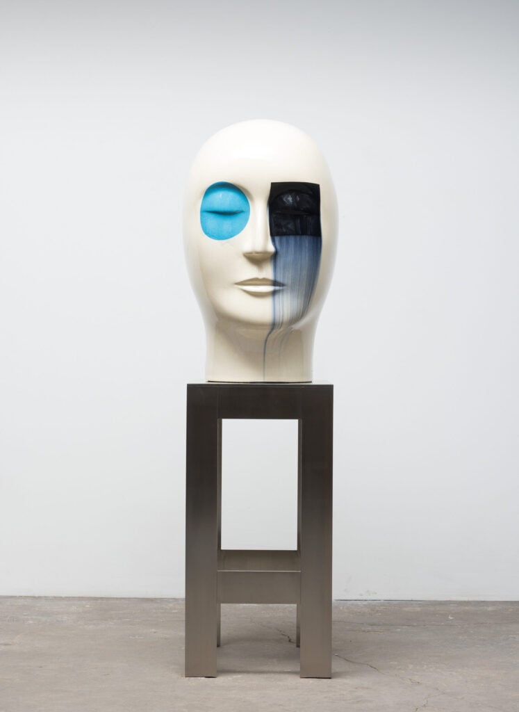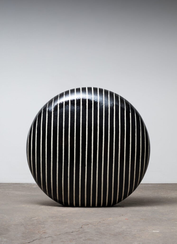 Hand built and glazed ceramics, stainless steel, 70 x 43.5 x 55 inches. Collection of the Ree & Jun Kaneko Foundation, Omaha, NE, USA.