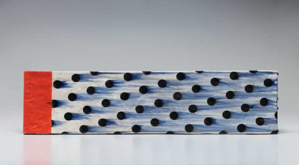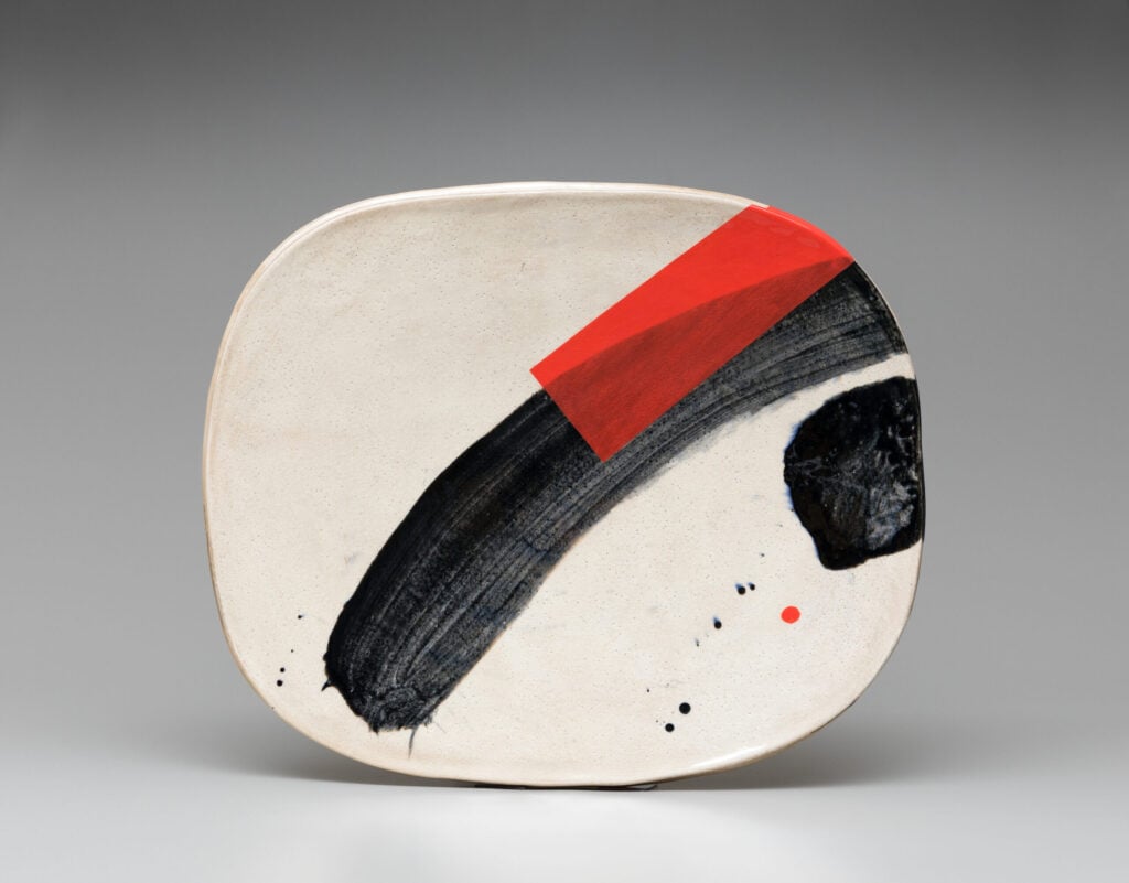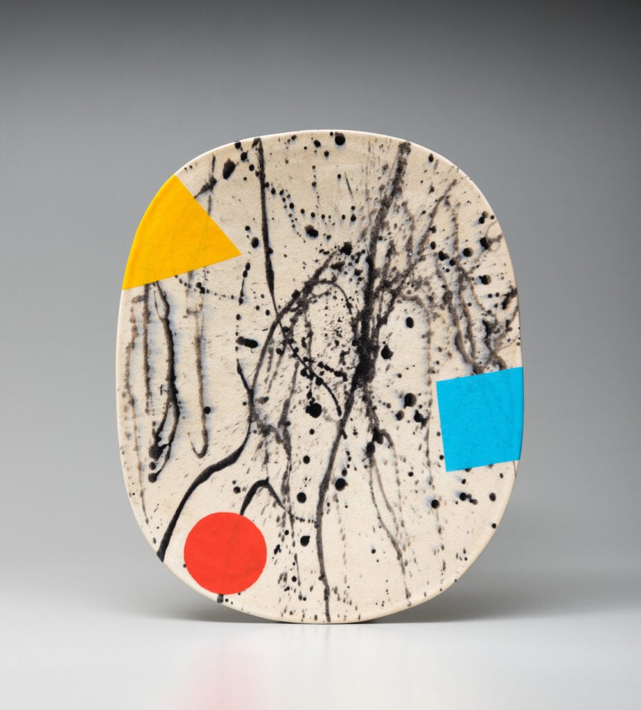Hand glazed raku ceramics, 39.5 x 35.75 x 2 inches. Collection of the Ree & Jun Kaneko Foundation, Omaha, NE, USA.