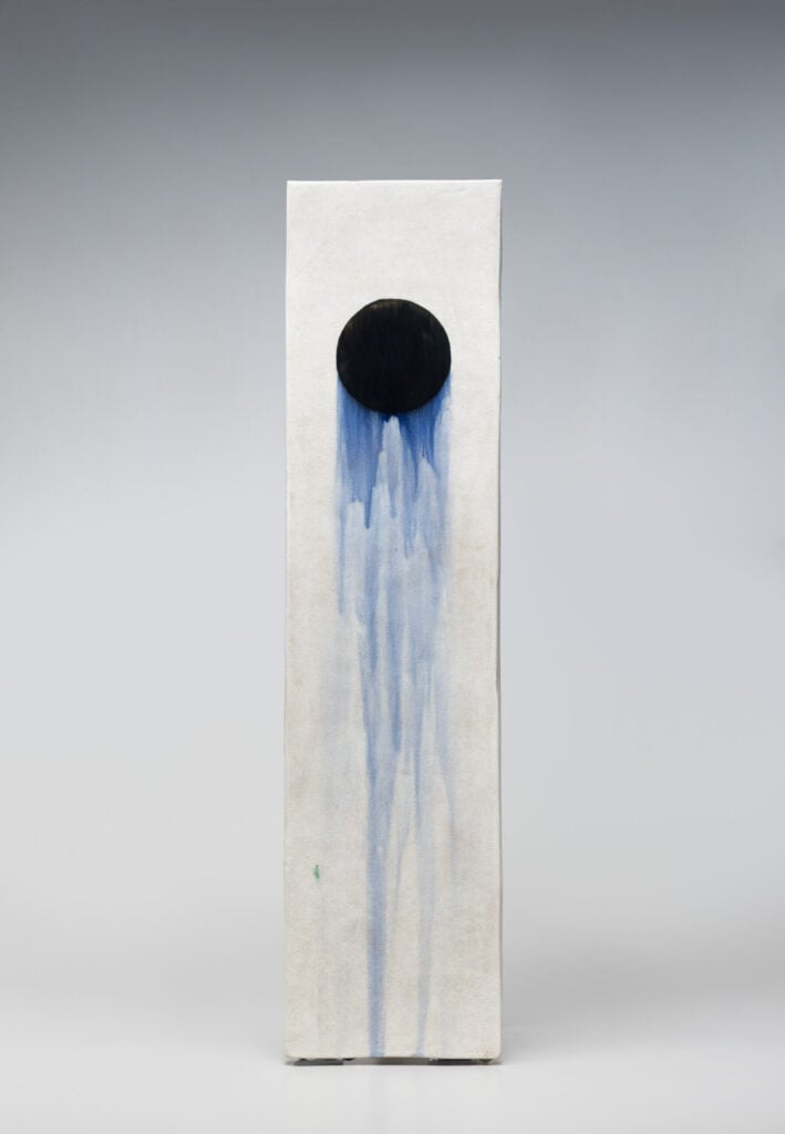 Hand glazed raku ceramics, stainless steel, 69 x 24.5 x 20 inches.