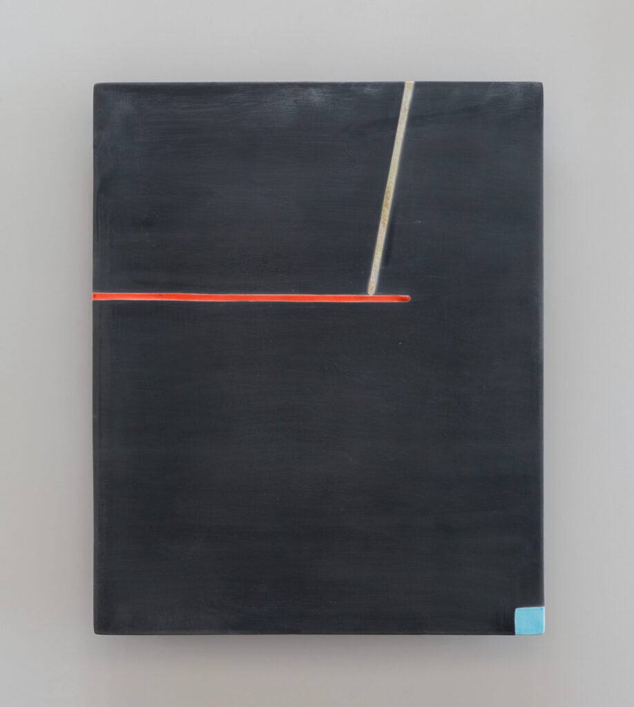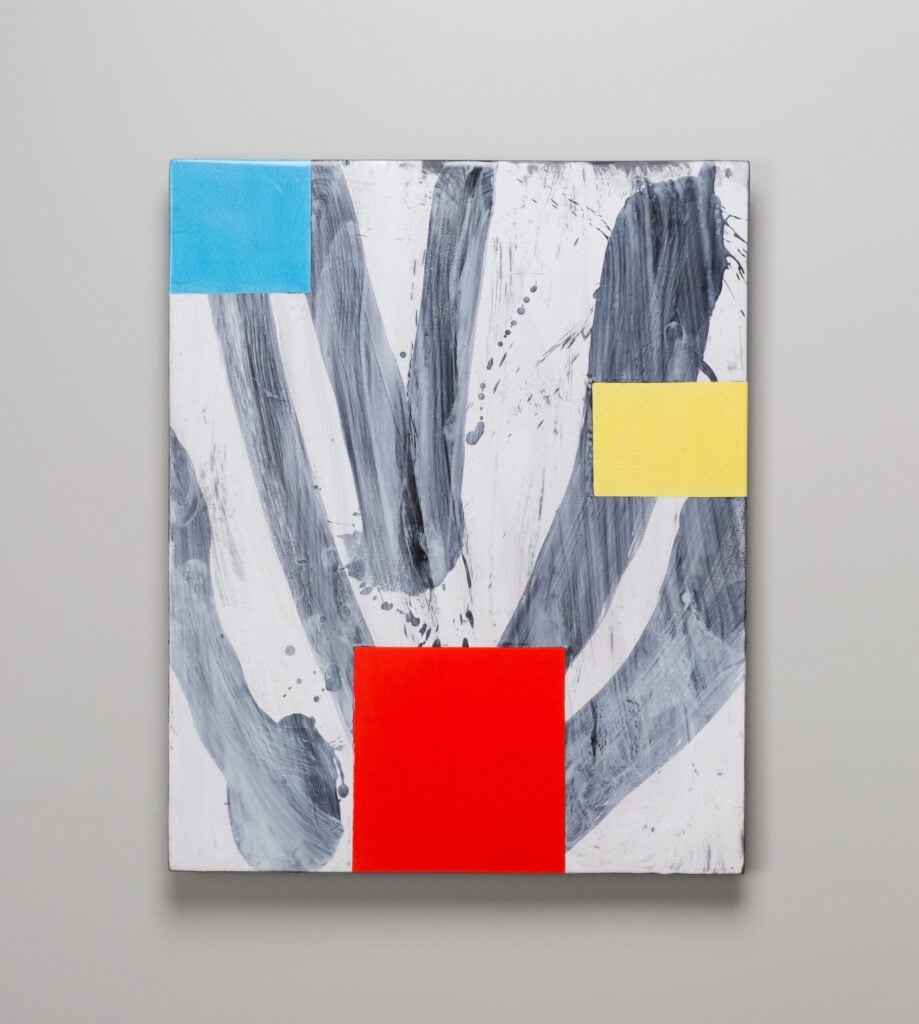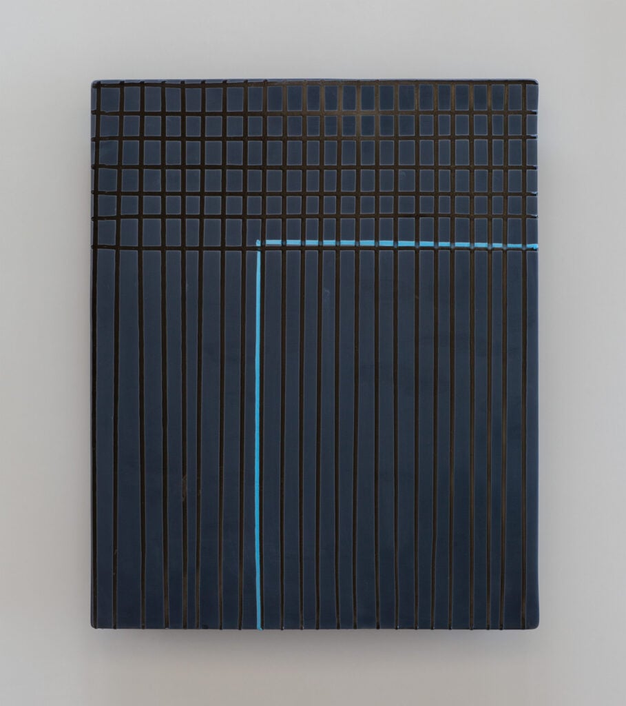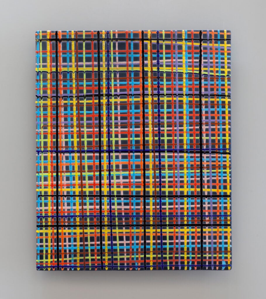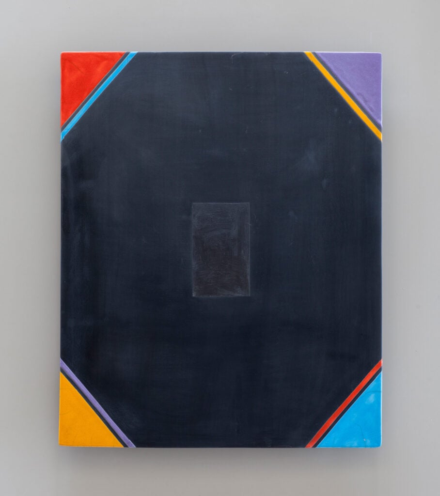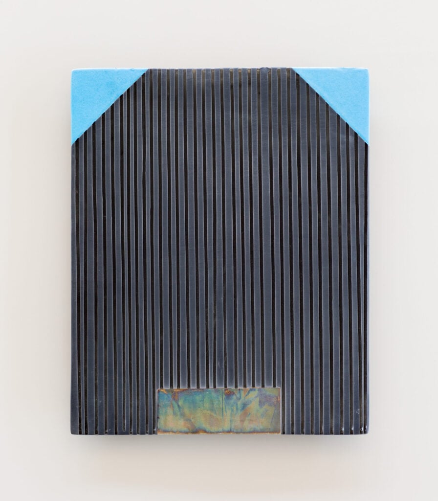 Hand glazed raku ceramics, 30.5 x 24.5 x 1.5 inches Private collection.