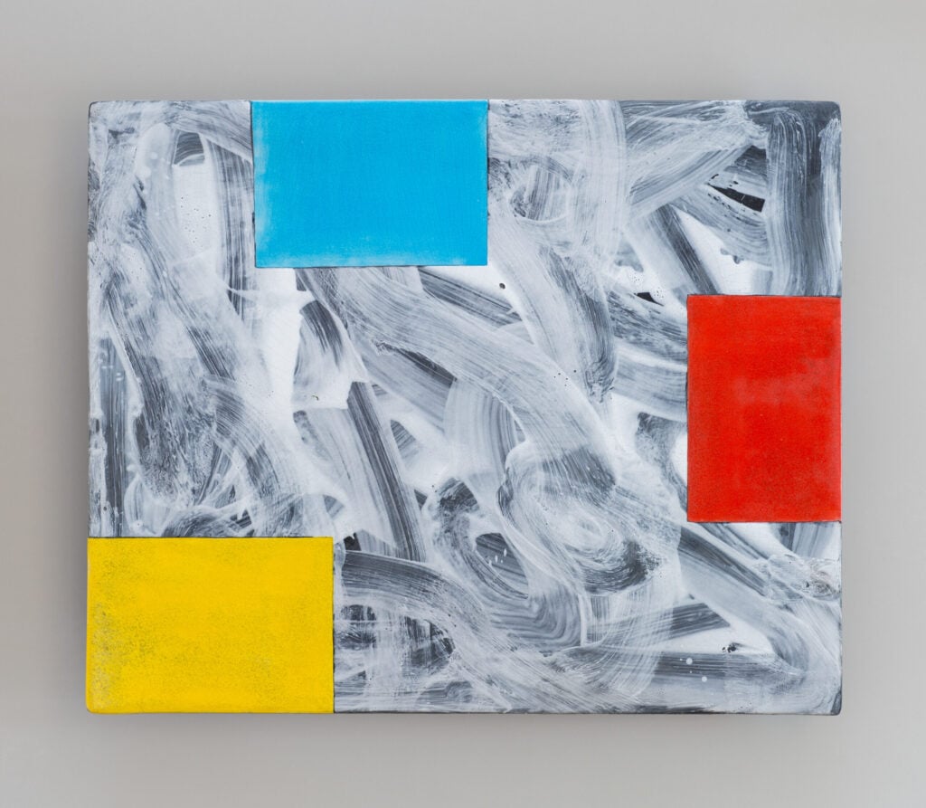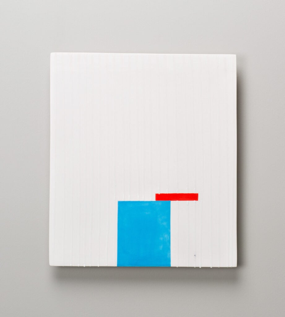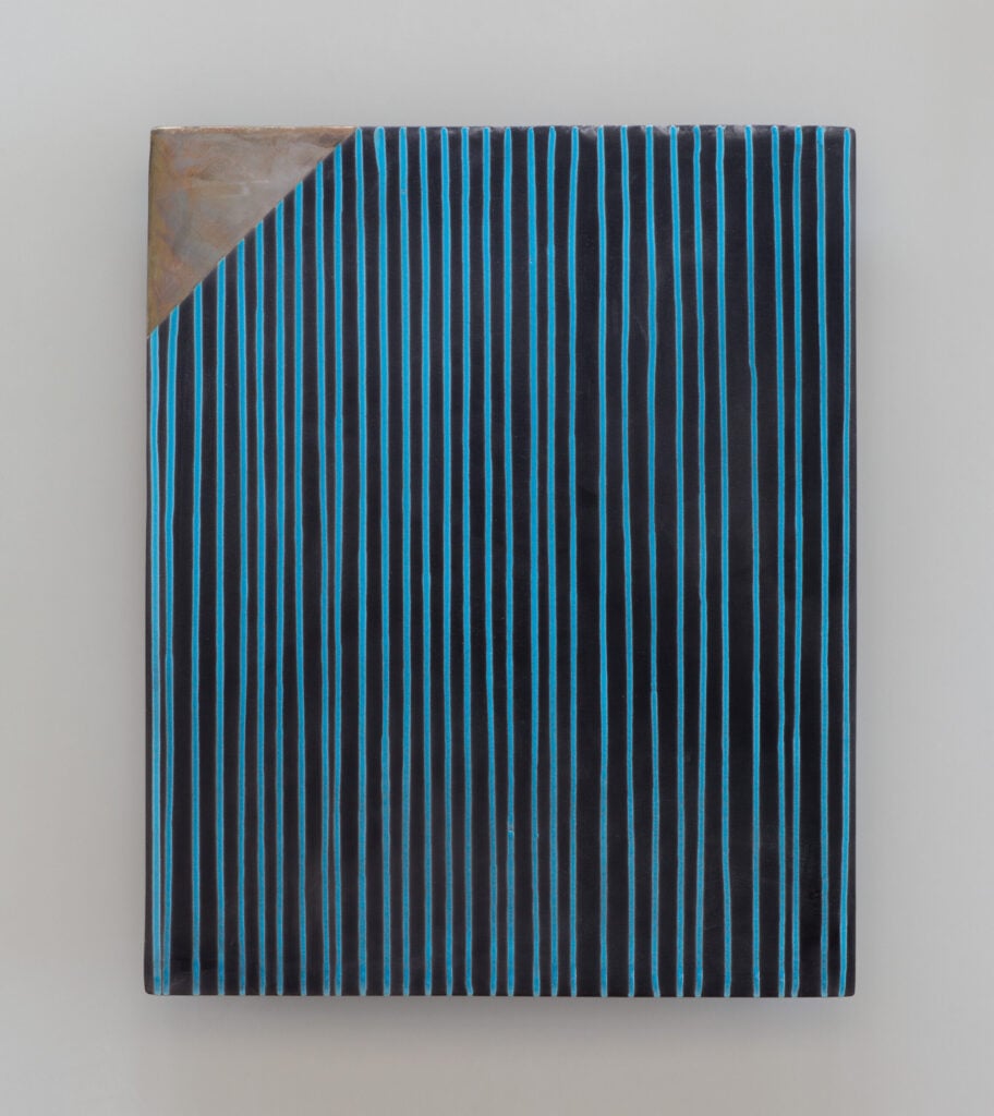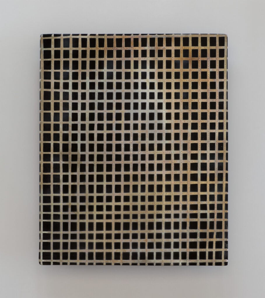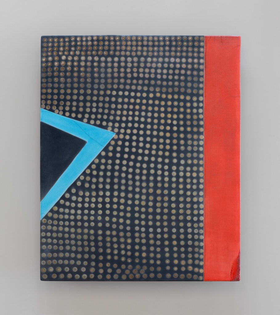 Hand glazed raku ceramics, 30.5 x 24.5 x 1.5 inches Private collection.