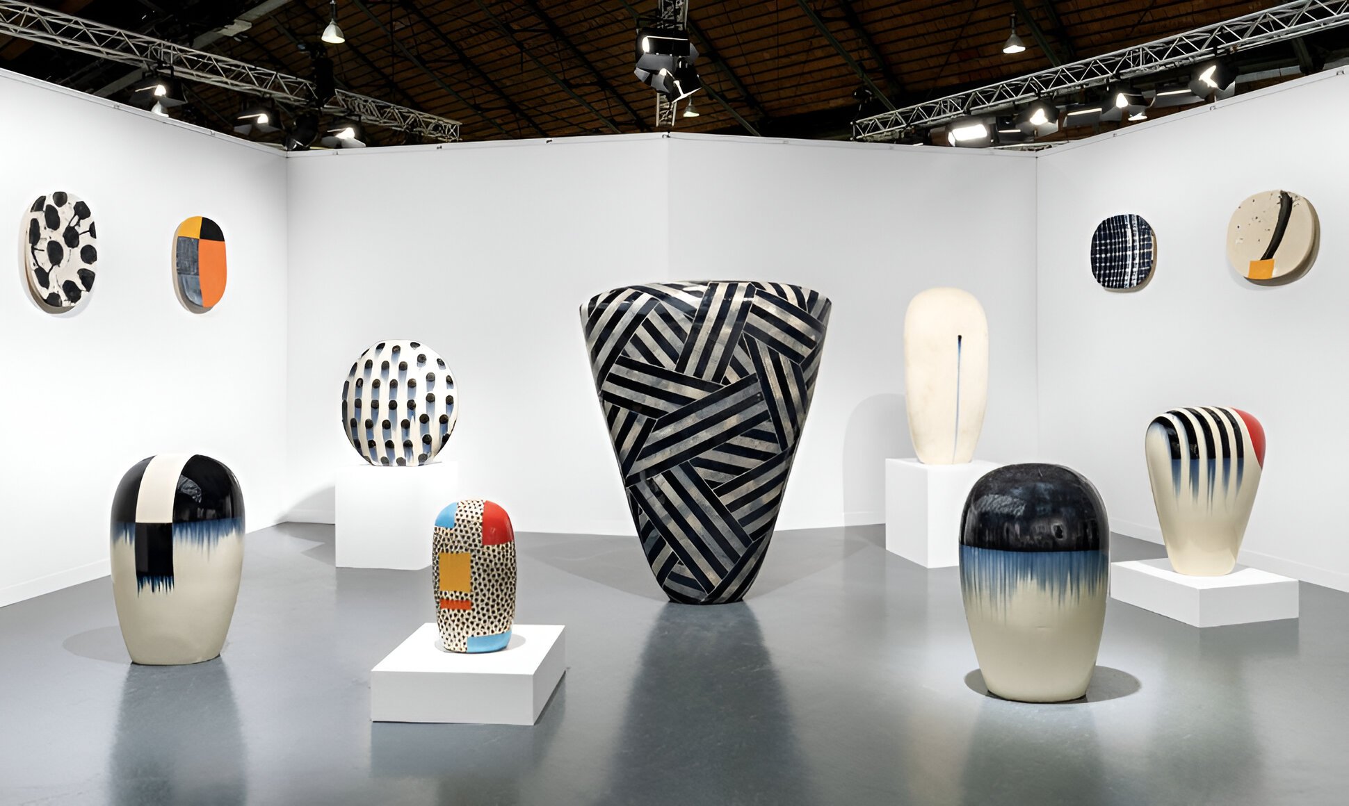 After nearly a month of firing, Jun Kaneko’s assistants Trevor, Takemi, Jack, and Garet slowly cranked open the door to the kiln and carefully wheeled out the newest load of glaze fired ceramics. The work fresh out of the kiln included large Dangos, small Dangos & test tiles! Each piece consisting of Jun’s signature patterns and colors.