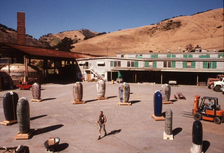 In April 2005, three semi trucks rolled away from Jun Kaneko’s Omaha studio loaded with a multitude of wooden tools and paintbrushes, forklifts, industrial clay mixers, and forty-five tons of…